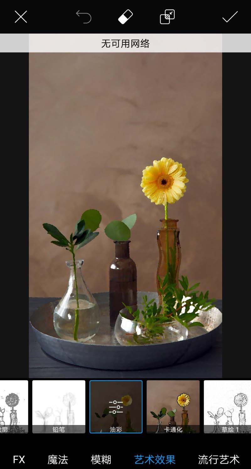 picsart中可以制作油彩画效果,主要利用了艺术效果和调整功能,该怎么制作呢?下面我们就来看看详细的教程。