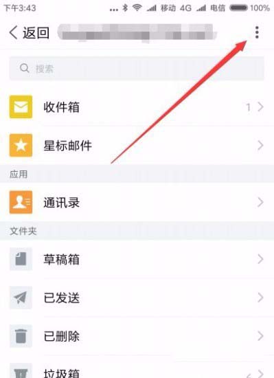 3、在打开的邮箱管理页面中,我们点击右上角的“主菜单”按钮。