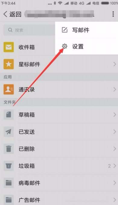 4、接着在弹出的邮箱管理菜单中, 我们点击“设置”菜单项。