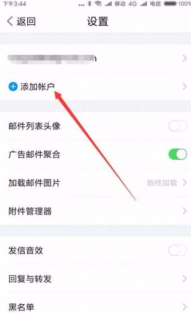 5、这时就会打开邮箱设置窗口,在窗口中我们点击“添加账户”菜单项。