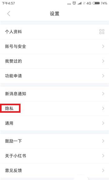 6、在设置功能界面中找到【隐私】选项并点击,我们需要的设置就在这里。