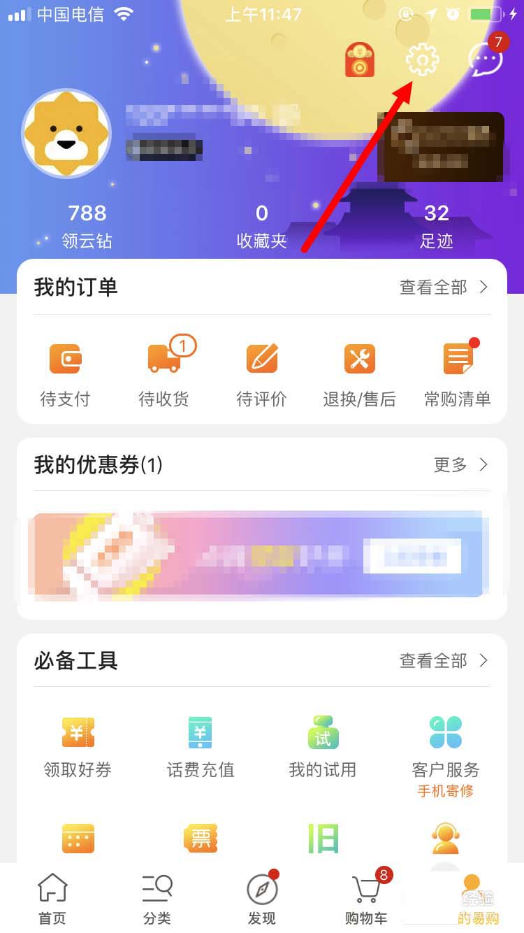 1、首先在手机上打开并登录苏宁易购App,并在首页面点击右下角的我的易购。