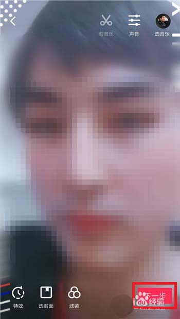 6、录制完换妆的视频后就可以编辑视频了,选择好封面和音乐后点击【下一步】。