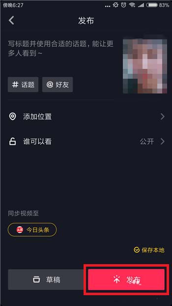 7、点击后会进入到视频的发布界面,点击右下角的【发布】即可发布刚才的换妆视频。