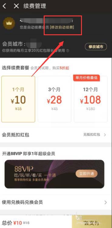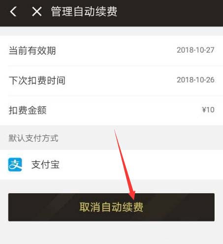 5、然后来到新界面,看到会员有效期及自动支付时间,下方还有扣费金额,最下方则为取消按钮,点击。