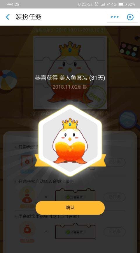 以上就是支付宝小鸡穿美人鱼套装的方法,希望大家喜欢,请继续关注脚本之家。