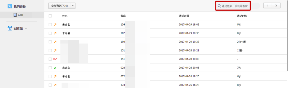点击右上角的搜索,能够查找具体的某个人的通话记录。