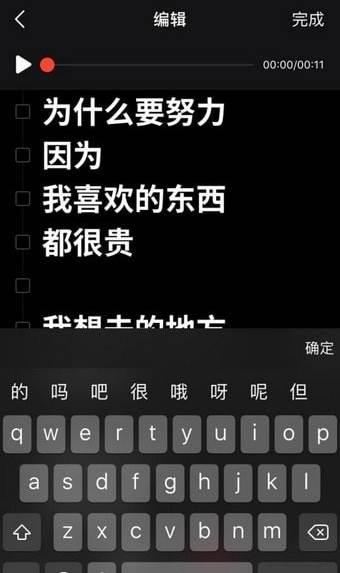 3.识别出的文字如有偶尔的不准确,均可在“编辑”界面进行优化和细节排版。编辑设置文字动画的规则是:一行为一个动画,空行代表文字动画的翻转效果。
