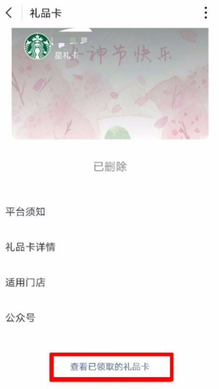 进入礼品卡界面,点击页面底部的【查看已领取的礼品卡】。