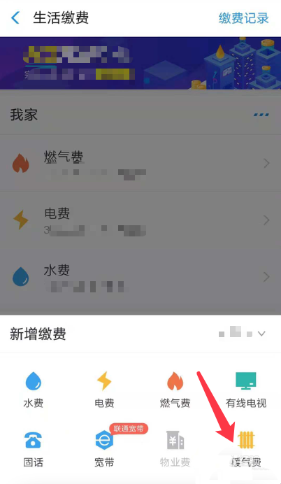 5、然后在新增缴费类型中,选择【暖气费】缴费单位
