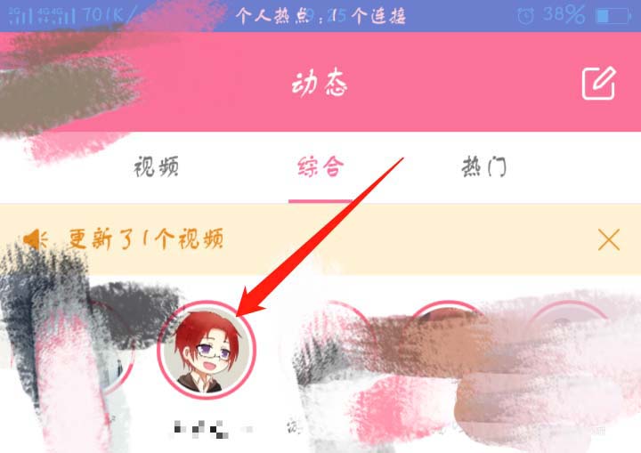 2、如果在动态栏看到自己喜欢的主播正在直播,就可以点击他的头像,进入他的直播间,只有进入他的直播间才能赠送辣条。