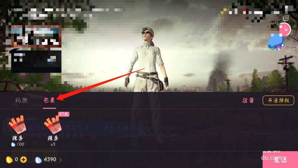 4、在礼物区域,有两栏,一个是【礼物】,一个是【包裹】。礼物一般都是需要自己充钱购买金瓜子才能进行购买的。而包裹就是用户用本身的银瓜子购买辣条进行赠送的地方,也是存放自己在主播直播间里抽奖获得的辣条的地方。