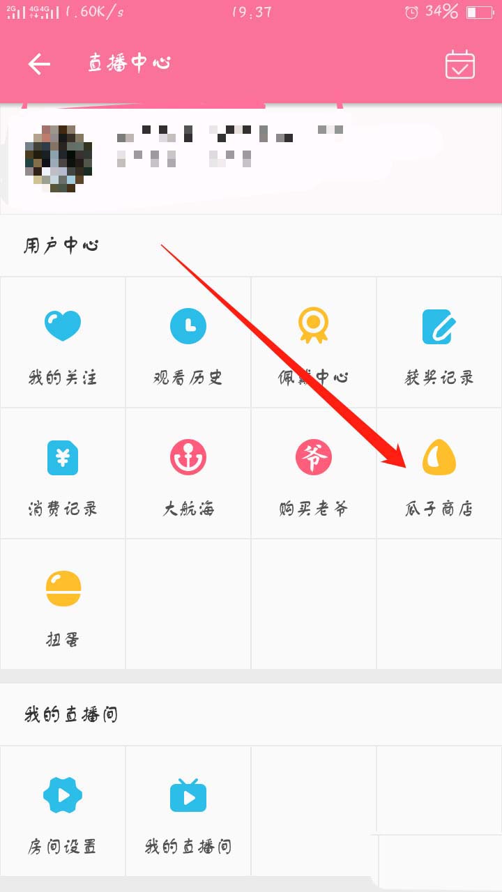 6、而银瓜子除了平时的活动获得之后,可以用硬币或者金瓜子兑换获得。金瓜子主要通过充值获得,而不用钱的硬币则可以直接兑换银瓜子。点击个人信息栏的【直播中心】,然后点击【瓜子商店】。