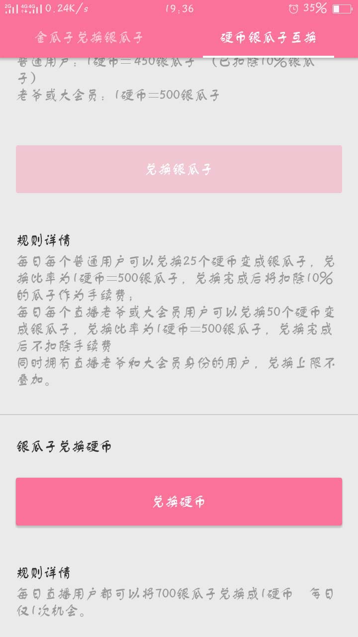 7、瓜子商店是兑换银瓜子的地方。普通用户每天可以兑换5次,一个硬币可以兑换500个银瓜子。而硬币每天上线看视频就能获得。
