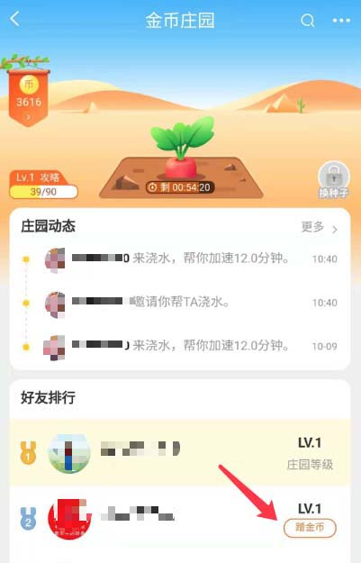 3、可以根据好友排行版块中的好友列表中,选择点击其中一位好友中的【蹭金币】按钮