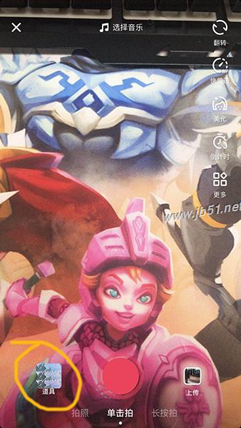 1、打开抖音之后,点击拍摄视频然后选择左边的【道具】