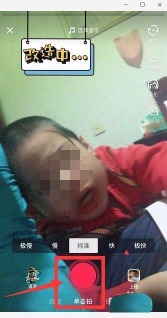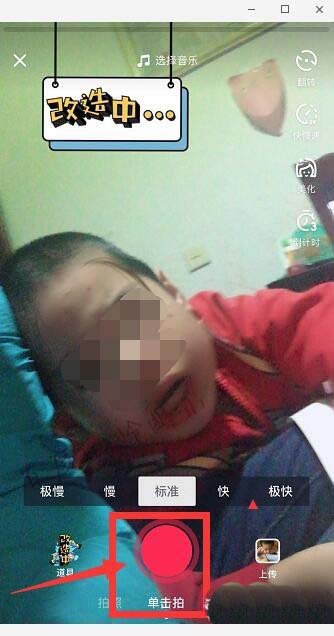 4、点击“单击拍”,拍的时候脸部会变丑,跟着经过改造会有一瞬间变美,之后又恢复改造 前。