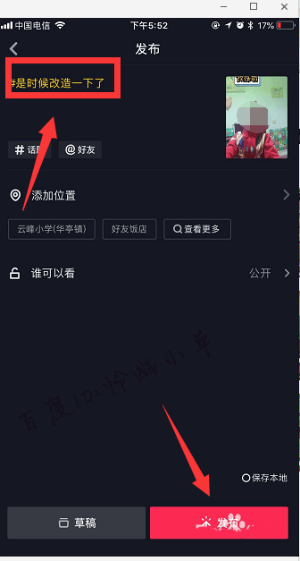 6、会自动添加话题:是时候改造一下了,可输入标题,点击“发布”。