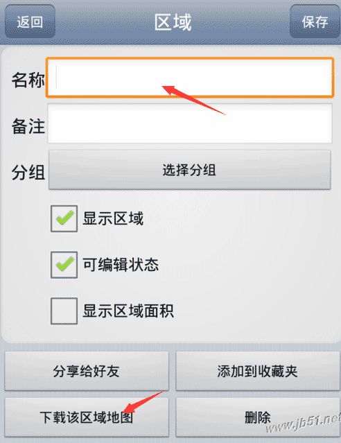 4、双击所圈的区域,在出现的界面中进行命名和下载地图。