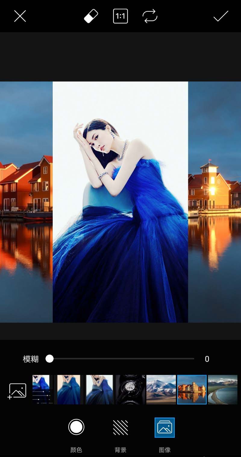 1、首先启动手机picsart,打开一张人物素材图片。