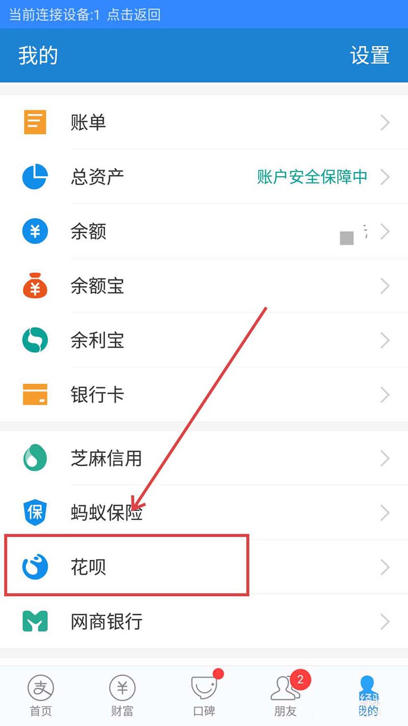 1、首先我们在【我的】的界面中找到【花呗】,点击进入。