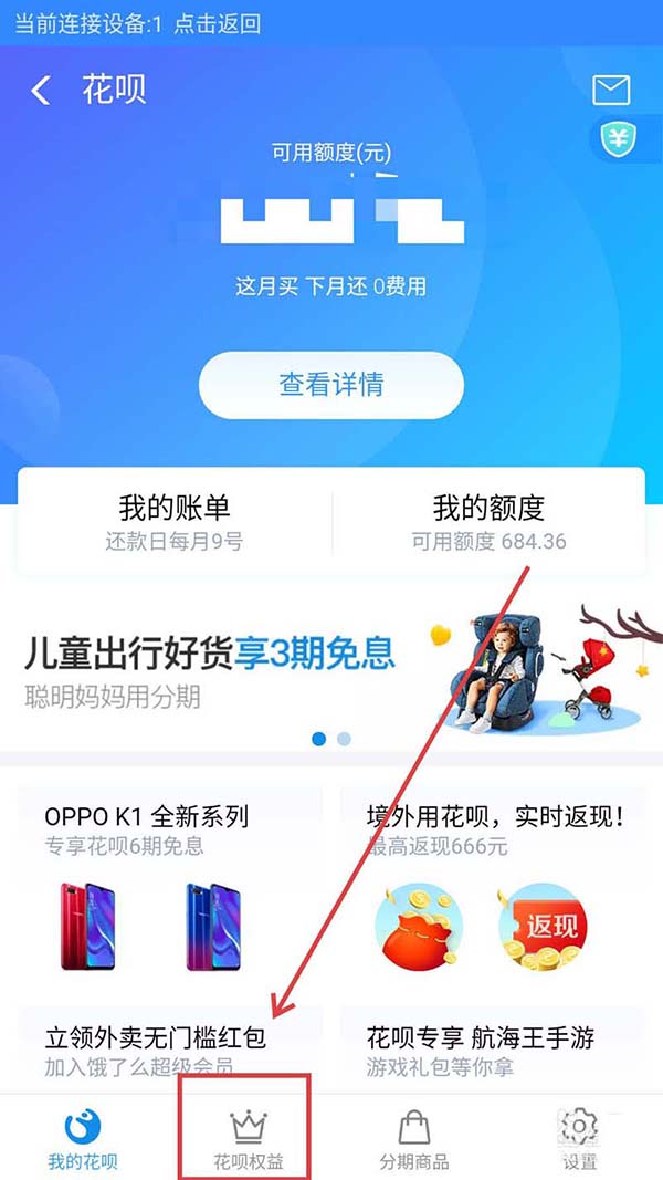 4、在这里我们就可以查询我们拥有的花呗权益了,如图所示。