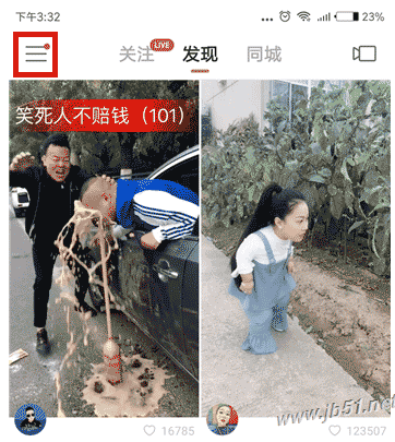 打开快手APP,点击首页左上角的【更多】选项。