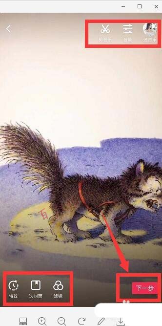 7、拍好了如果有必要,也可以设置一下封面,添加滤镜,如果不满意音乐也可以替换掉,好了以后选择“下一步”,并发布即可。