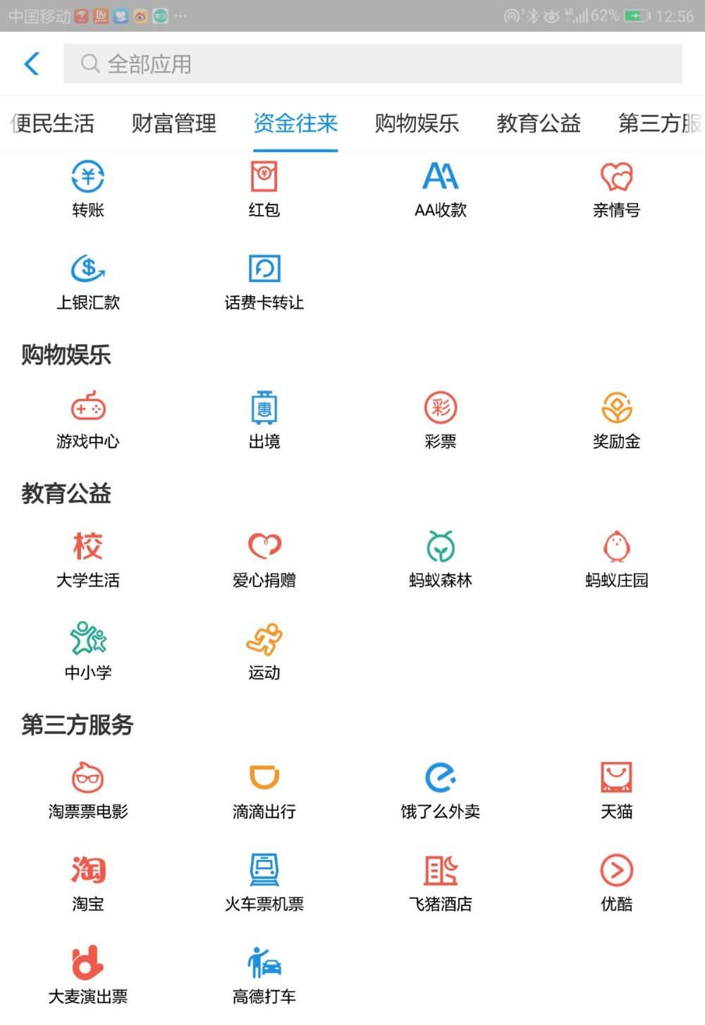 2、进入到支付宝首页后,我们点击上方应用中的“运动”。