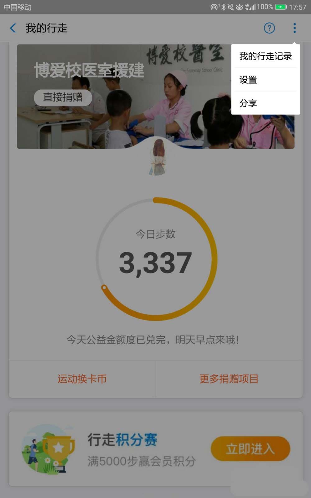 4、接着,进入到“我的行走”页面后,点击右上角的三个点图标。