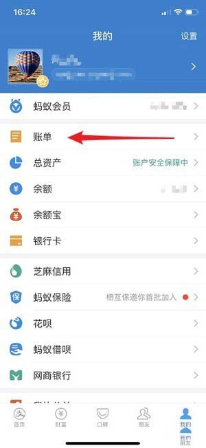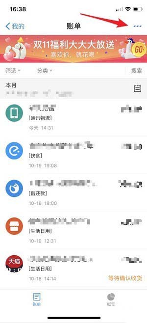 点击【账单】再点击右上角【…】;