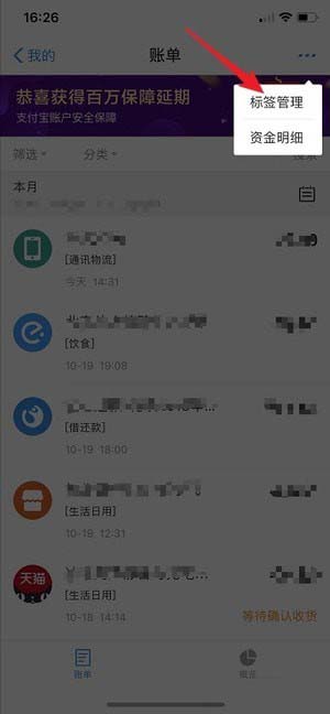 支付宝账单标签怎么删?支付宝账单标签删除流程?