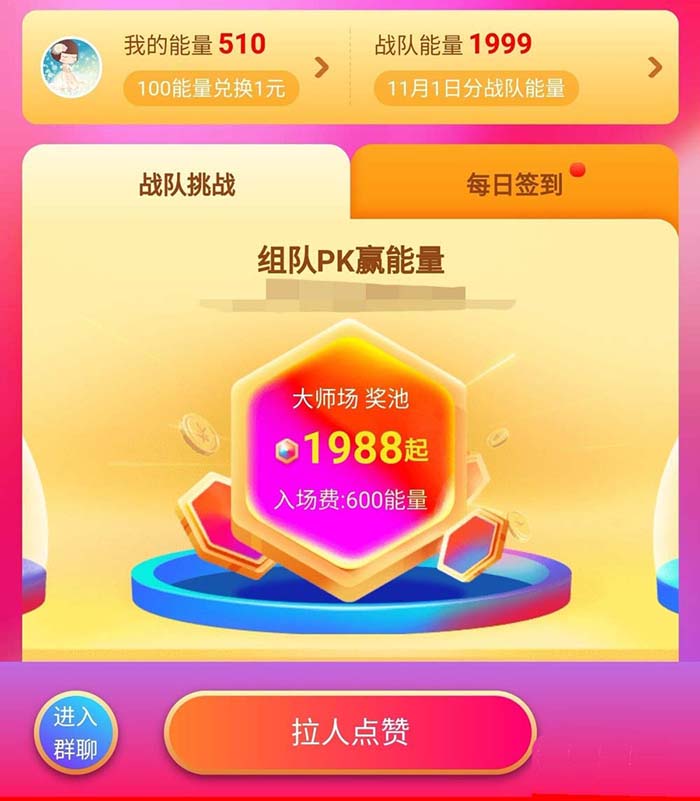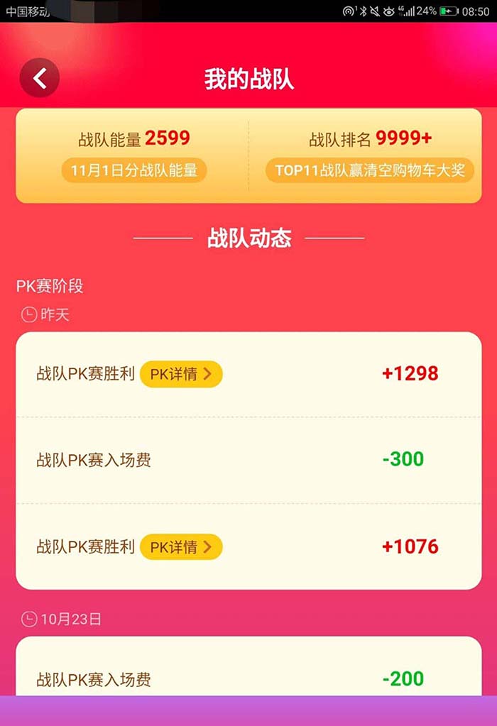 2、以上就是小编为大家分享天猫双11团队PK的技巧了,希望可以帮助大家每天都大获全胜,满载而归,收获多多哟~