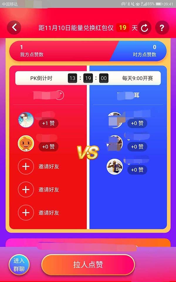 5、个人赞数多,团队才会赞数多,所以,集赞需要每个成员分工合作,助力完成,这样之后,我们才有较大把握PK掉对方团队。