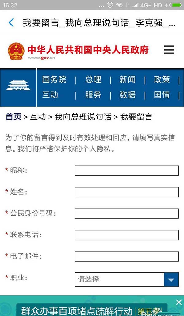 4、在政务界面,我们可以看到其他类别里的“我向总理说句话”,我们点击进入。
