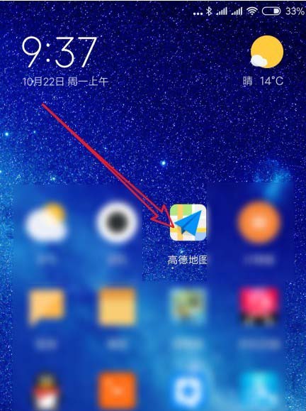 1、首先我们在手机上左右的滑动屏幕,在屏幕上找到“高德地图”的图标。
