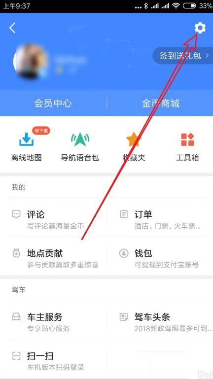 3、接下来在打开的高德地图个人中心页面中,我们点击右上角的“设置”按钮。