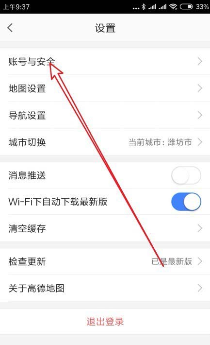 4、这时就会打开高德地图的设置页面,在页面中我们找到并点击“账号与安全”菜单项。