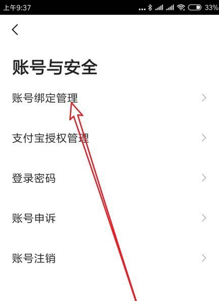 5、在打开的账号与安全页面中,点击“账号绑定管理”菜单项。