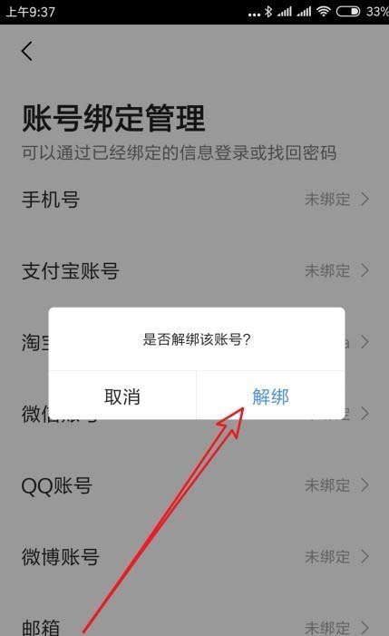 8、接着会弹出一个确认解绑的提示窗口,点击“解绑”按钮就可以了。