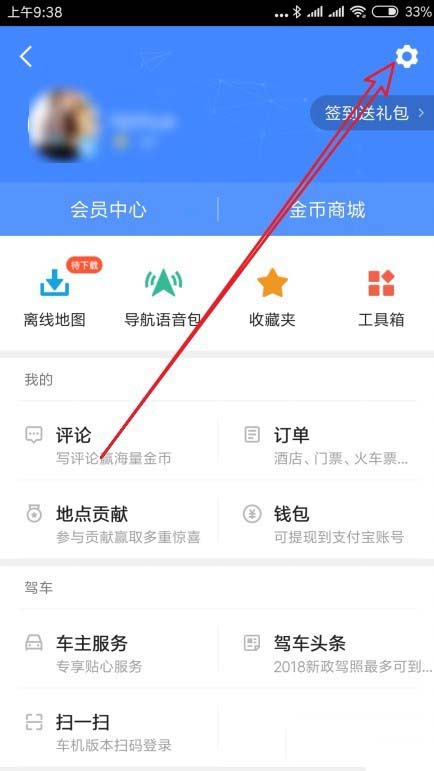 1、首先在手机上打开高德地图,然后在打开的高德地图我的页面中点击右上角的“设置”按钮。