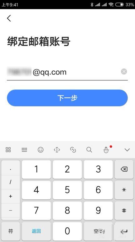 5、在打开的绑定邮箱账号窗口中,输入邮箱的地址,然后点击下一步按钮。