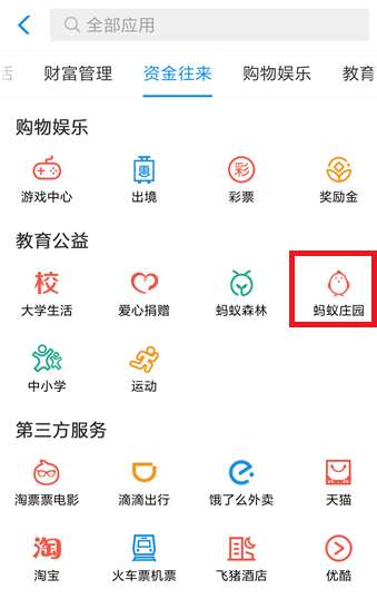 进入所有应用界面,点开【蚂蚁森林】应用,