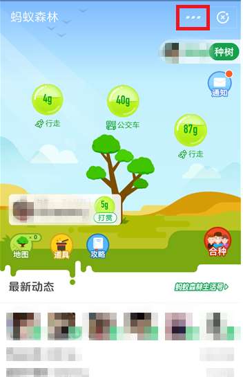 进入蚂蚁森林界面,点击右上角的【…】选项,