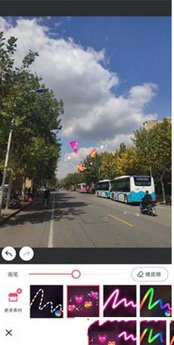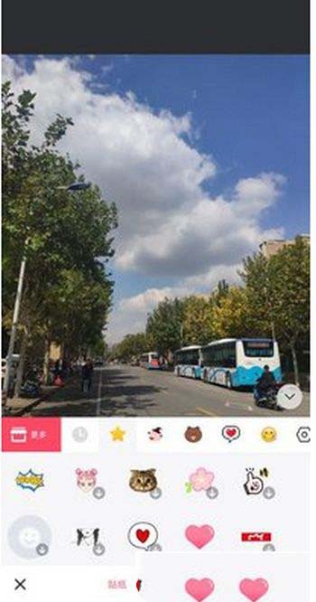 2.打开美图秀秀,选择美化图片-涂鸦笔/贴纸,使用贴纸中的爱心,将手机中的颜文字红色爱心粘贴进去。