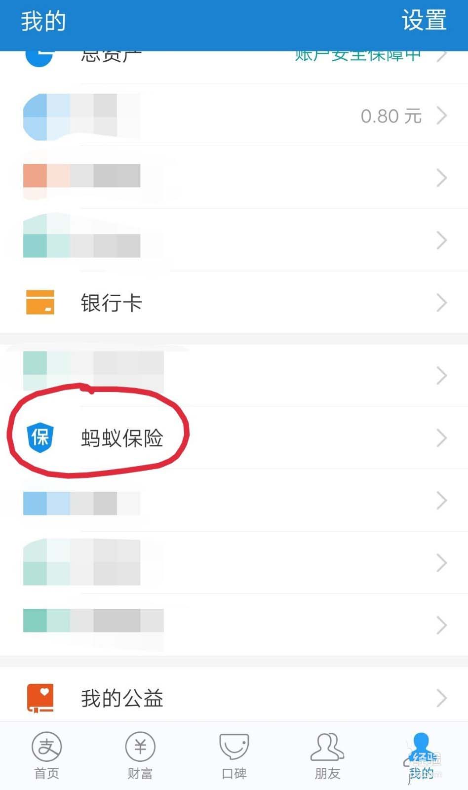 1、首先打开软件,点击我的……蚂蚁保险,如下图。