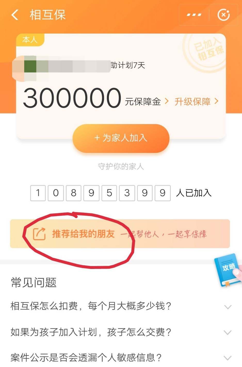 最近支付宝里面的相互保可谓非常火爆,我也第一时间加入了。下面教大家怎么把这个推荐给我的朋友。