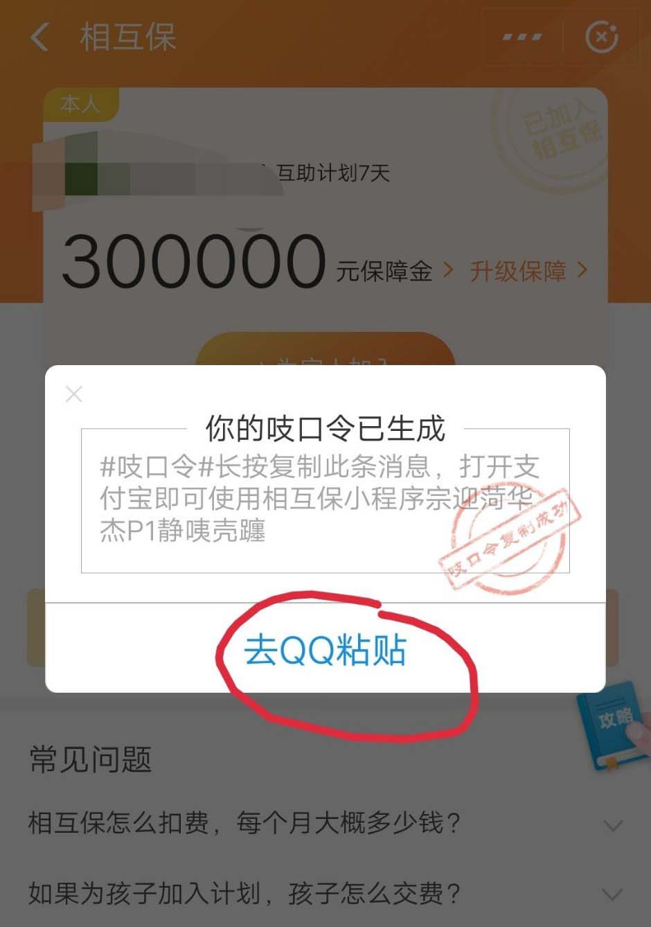 5、 推荐会自动生成吱口令,复制这个口令去扣扣粘贴。