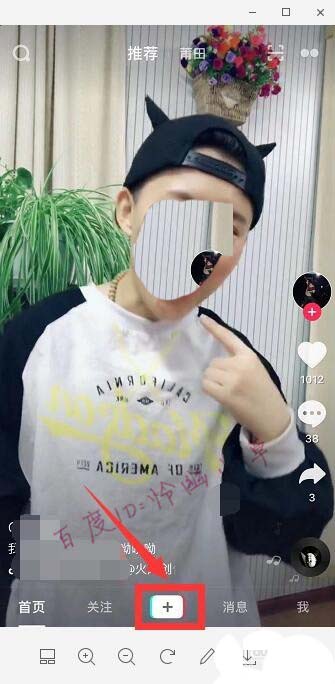 1、登录抖音,点击加号,如图所示。