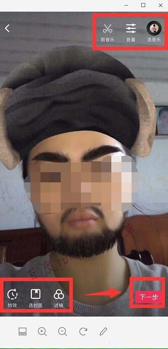 5、拍完后可以选下音乐、封面,继续“下一步”。